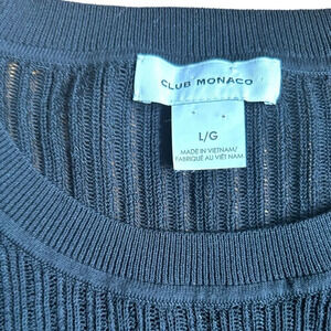 This size L sweater fits regular size women and comes in solid black color, making it easy to pair with any outfit. The sweater has no tags and is in new condition, making it a great addition to your wardrobe. Add a touch of classic charm to your style with this Club Monaco ribbed sweater.
