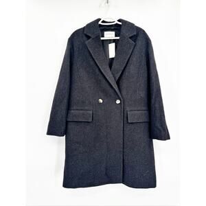 Club Monaco Black Relaxed Double Breasted Wool Coat Size Medium