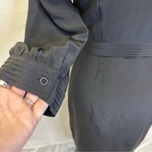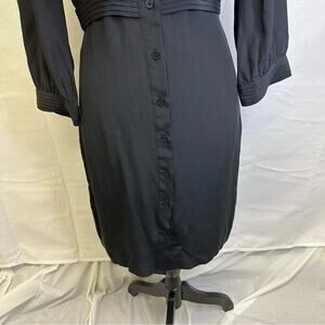 Club Monaco dress, black silk dress, ruffle shirt dress, Club Monaco shirt dress, women’s fashion, size 0 dress, elegant dress, office dress, button-down dress, designer dress