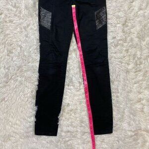 Club Monaco Black Skinny Jeans Size 4 Pants Stretch Cotton Leather Detail