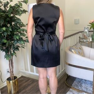 Club Monaco Black Sleeveless Belted Satin Sheath Fitted Midi Cocktail Dress 8