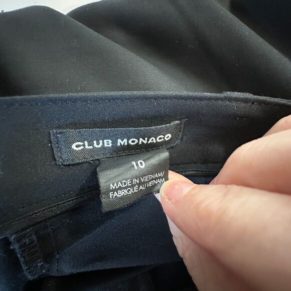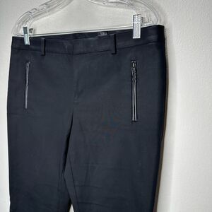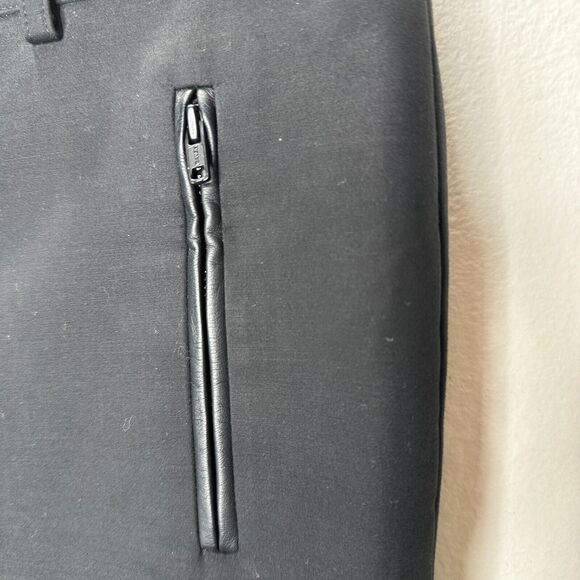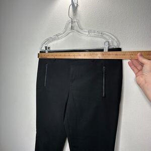 Club Monaco Black Straight Leg Trouser Pant Leather trim Lined Front Zip Pockets