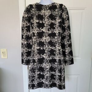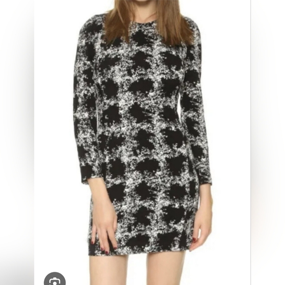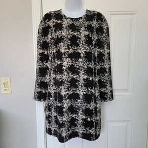 Club Monaco Black White Knit Kaisie Dress Long Sleeve Back Zip Lined Size 6