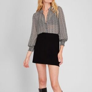 Whether worn on its own or as a layering essential, this semi-sheer fluid blouse is destined to become a work-to-after-hours favorite with its fluid feel and geometric print.