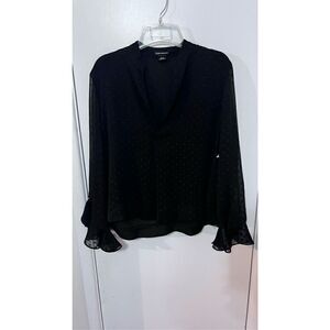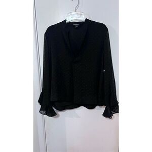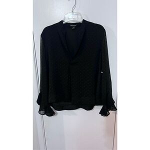 Club Monaco Black Silk Blouse Tiny Polka Dots Womens SZ XS