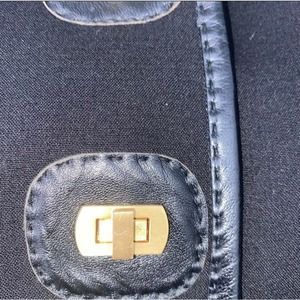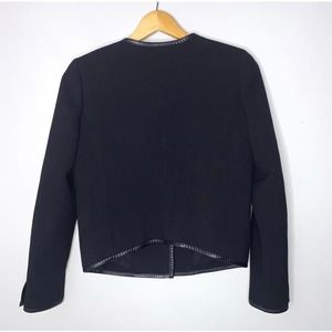 Club Monaco Blazer Women Size 2 Black Jacket With 100% Lamb Leather Trim *