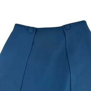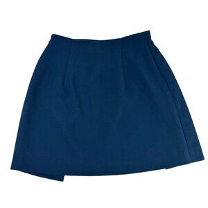 Chic and versatile Club Monaco textured mini skirt in a beautiful deep navy blue hue. Features a pleated front overlay with button detail, side zip closure, and a smooth inner lining for comfort and structure. Perfect for office wear, brunch, or elevated casual looks.