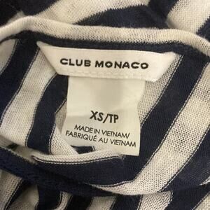Elevate your wardrobe with this stylish Club Monaco knit tank top! The soft knit fabric and flattering scoop neck make it a comfortable and chic choice for warm weather. The front chevron stripe pattern in blue and white adds a touch of visual interest, while the back high twist keyhole detail adds a subtle feminine flair.