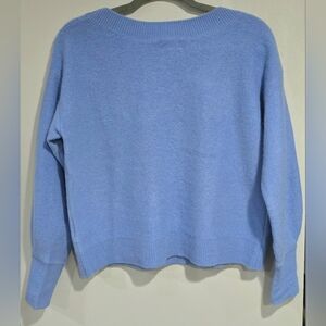 This is a 100% cashmere sweater by Club Monaco. It is very soft to the touch, has a boatneck, blouson sleeves and dropped shoulders.
