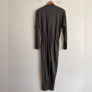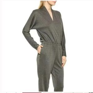 Club Monaco Briana Jumpsuit Dark heathered gray Long sleeves Side pockets Surplice neckline Stretch knit fabric V-neck Elasticized waistband