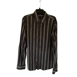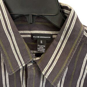 Club Monaco Button Down Shirt XL Striped Cotton Long Sleeve Black Gray Casual