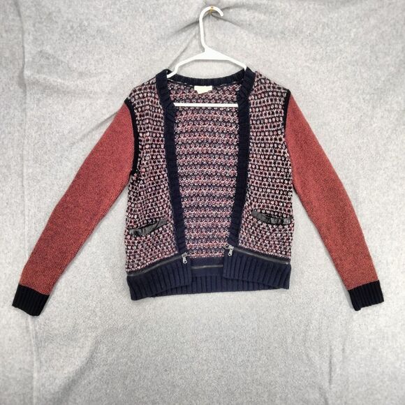 Club Monaco Cardigan Sweater Wmns Sz XS Leather Wool Angora Cashmere Open Front