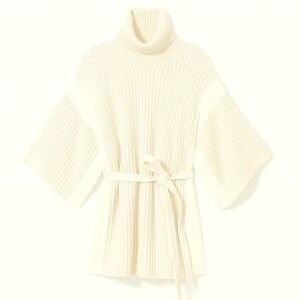 Club Monaco Cashmere Belted Turtleneck Sweater Half Sleeve Cream Soft Luxurious