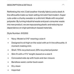 Club Monaco Centie Skirt Navy Wool Size 14 NWT