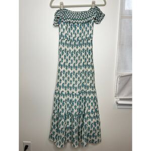 Club Monaco Channon Blue Floral Maxi Dress Size 0 100% Silk Off the Shoulder