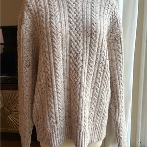 flecked cable-knit sweater made from a substantial wool blend. Warm and comfortable with plenty of visual interest.