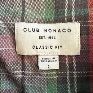 Club Monaco Classic Fit Long Sleeve Orange-Green-Tan Plaid Shirt Size Large