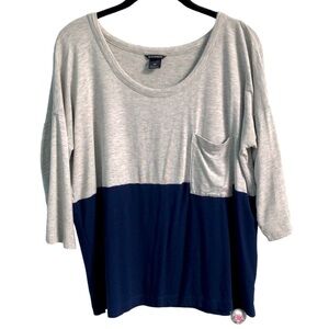 Club Monaco Colorblock Gray and Navy Blue Long Sleeve Top Size Small Oversized