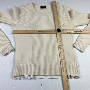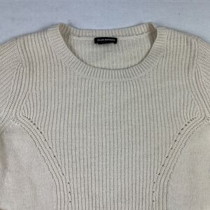 Club Monaco Cream Knit Pullover Sweater Small Sheer Ruffle Hem Rabbit Hair Blend