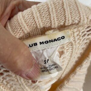 Club Monaco Cream Knit White Laced Trim Short Sleeve Turtleneck Sweater Small