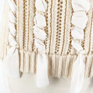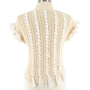 Club Monaco Cream White Ribbon Laced Trimmed Short Sleeve Turtleneck Sweater Small