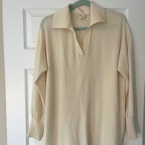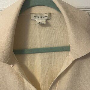 Club Monaco Cream Oversize Pullover Polo Collared Sweater