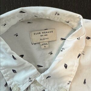 Stylish cream shirt featuring black nautical motifs. Perfect for casual wear.
