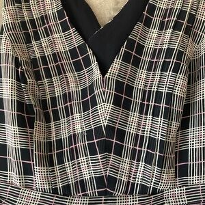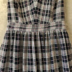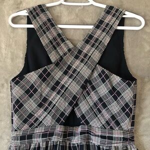 Club Monaco Cross Back Dress Size 4 Plaid V Neck Flowy Side Zip Special Occasion