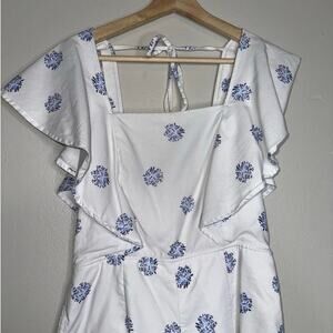 Club Monaco Darmida Floral Romper Ruffle Detail Open Back Size 4 Blue/White