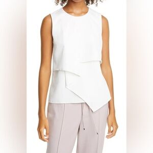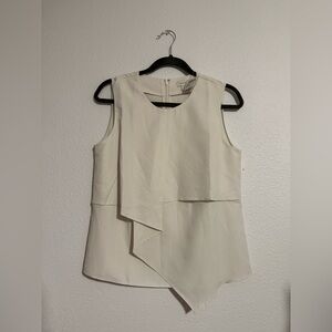 Asymmetrical draping adds a graceful, modern element to a perfectly polished woven blouse.