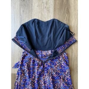 Club Monaco Dress Women Sz 2 Blue And Orange Floral Graphic Strapless Cocktail