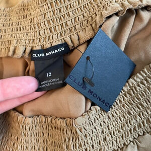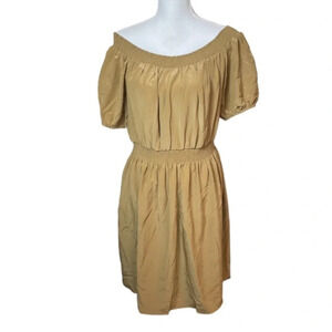 Club Monaco Dress Womens 12 Silk Nude Beige Smocked Flowy Neutral Minimal Boho