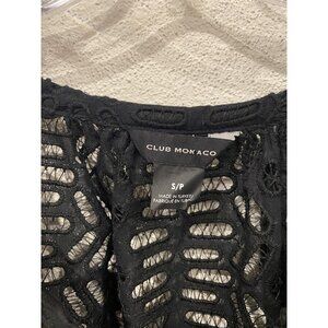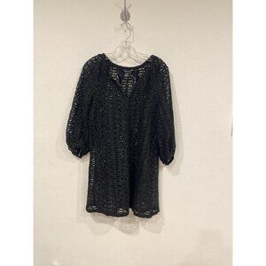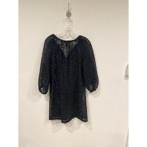 Club Monaco Dress Womens Small Black Crochet Knit Sheer 3/4 Sleeve Pullover