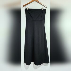 This is a strapless, black, knit maxi dress by Club Monaco. Stretchy size 8; fits like a medium