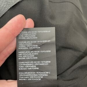 Faux leather shell: 89% viscose, 11% polyester with 100% polyurethane coating