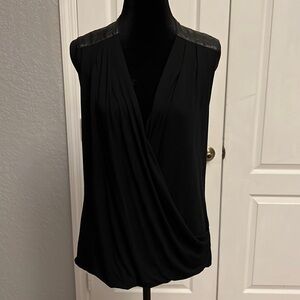 Great used condition. Club Monaco Faux leather shoulder cross top Pit to pit 17” Length 27”