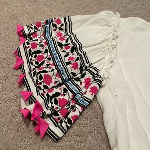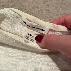 Club Monaco. White House with floral, fun sleeves. Made of viscose and linen but feels like a soft linen. Great blouse for work or a nice spring or summer day. Size XS.