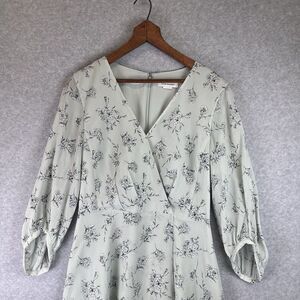 Club Monaco Floral Cotton Silk Pitched Sleeve Sheer Mini Dress Faux Wrap Sz. XS