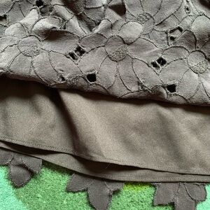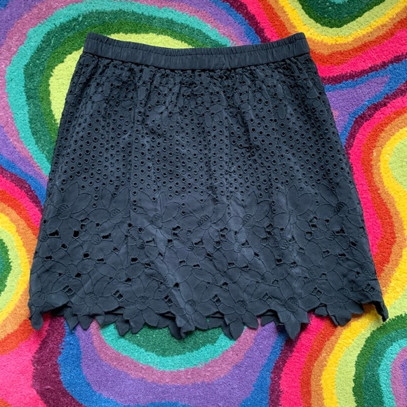 Cute skirt from Club Monaco has eyelet / cutout design with unique floral hemline. Elastic waist. Fully lined. In great condition.