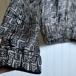 Club Monaco Geometric Black and Gray Bomber Jacket Front Zipper Sz M 100% Silk