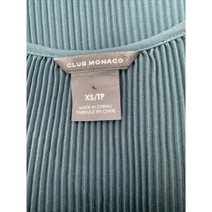 The Club Monaco Green Accordian Pleated Blouse in size XS is a stylish and versatile top for women. This blouse features a regular fit with long sleeves and pleated accents, adding a touch of sophistication to the basic style. The green color gives it a trendy and fresh look, making it perfect for a variety of occasions. Made by the reputable brand Club Monaco, this blouse is sure to be of high quality and fashionable design.