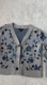 Gray floral knit (100% Wool). Sweater. Long sleeves. Front 3 button closure. Rib knit v-neck, cuffs and hem. Easy boxy fit.