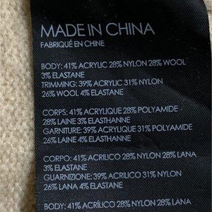 Material is 41% acrylic/28% nylon/28% wool/3% elastane