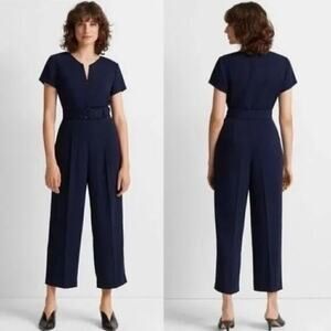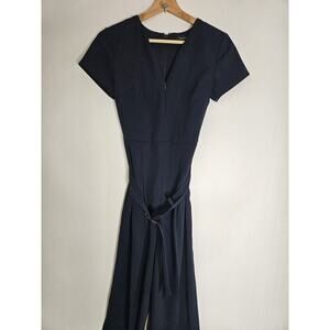 Club Monaco Hidden Pockets Zip Jumpsuit Wide Leg Navy Size 00