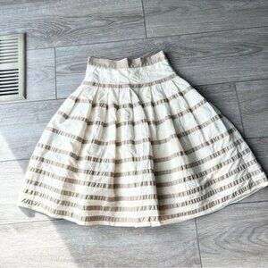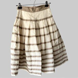 Club Monaco Ivory Tan Striped Pleated Circle Skirt