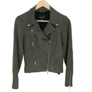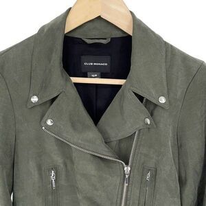 Club Monaco Kapri Womens Zip Crop Moto Biker Jacket Olive Green XS