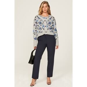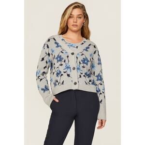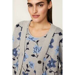 Gray floral knit (100% Wool). Sweater. Long sleeves. Crew neck. Front button closure. 20.75"" from shoulder to hemline. Imported.