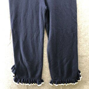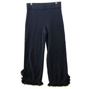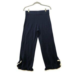 Club Monaco Knit Sweater Pants Womens S Navy Blue Ruffle Hem Merino Wool Cropped