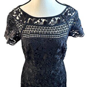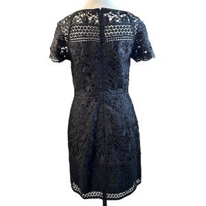 Club Monaco Lace Overlay Sheath Black Dress Sz 4 Short Sleeve Cocktail Party