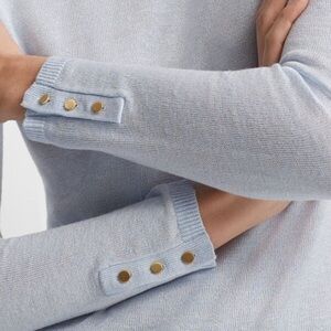 Club Monaco Lana Linen Blend Sweater Blue Button Cuff Rolled Neck Coastal SP - in great used condition. When laid flat, top measures approximately 17 inches from pit to pit and 23 inches long.